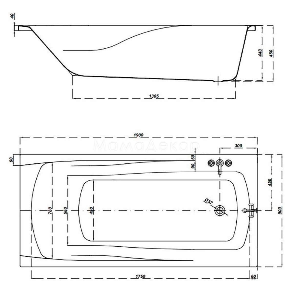 - размер (Д х Ш х Г): 190 х 90 х 44 см