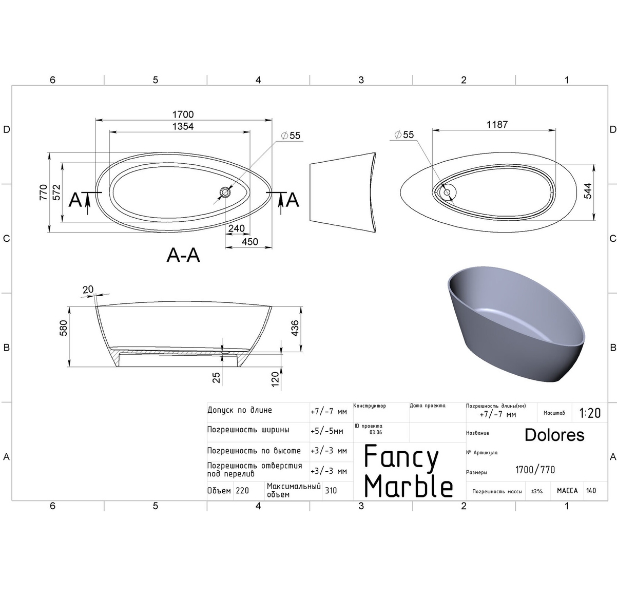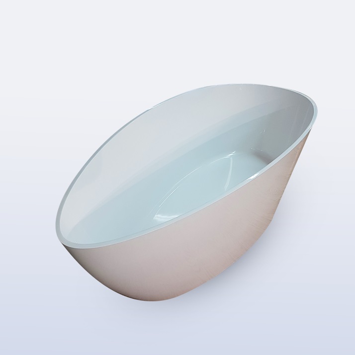 Отдельностоящая ванна из литого мрамора со сливным отверстием в полу. Ванна отличается высокой прочностью, теплопроводностью и может быть установлена у стены или по среди комнаты. Также, возможно окрашивание ванны, внешняя часть и борт, в соответствии с таблицей RAL Kemichal.