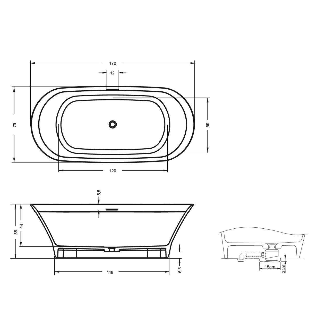 - сифон и система Click/Clack включены в стоимость ванны, верхняя крышка системы Click/Clack изготовлена из белого литого мрамора