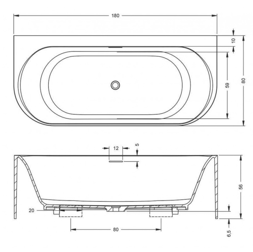 - полусвободная овальная двухстенная ванна, на задней стенке с твердой поверхностью, с внутренним сливом, переливом и щелчком / щелчком