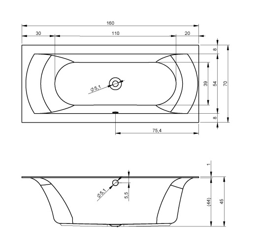 - вариант левая/правая - возможность установки массажной системы слева/справа (дополнительная опция)