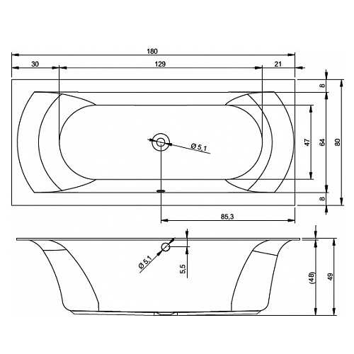 Ванна Riho Linares Velvet 180x80 (B142001105)