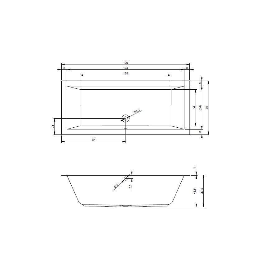 - 190 x 80 x 47.5 см, высота края всего 1 см