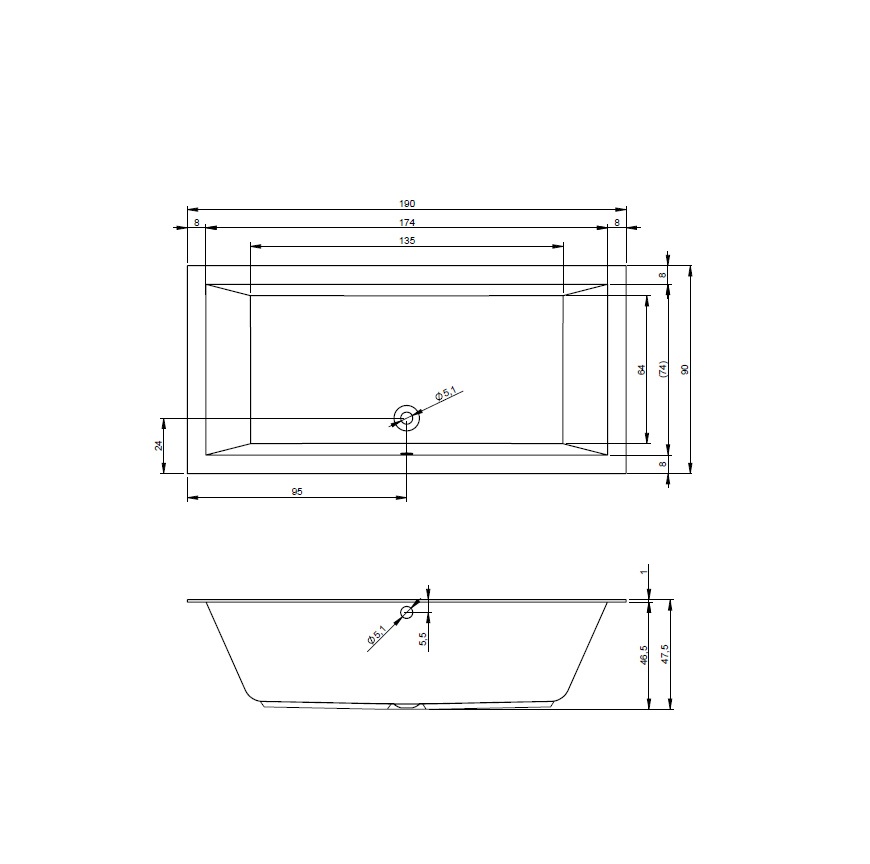 - 190 x 90 x 47.5 см, высота края всего 1 см
