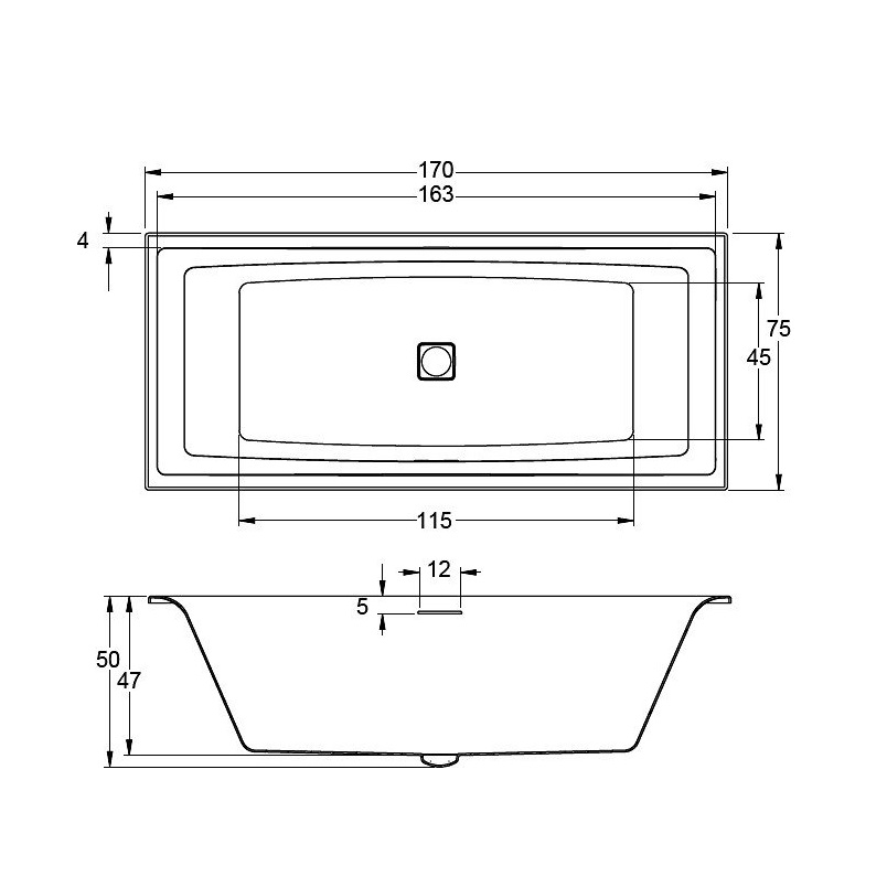 - расположение слива-перелива по центру, минималистский перелив с крышкой, сливная крышка в цвет ванны
