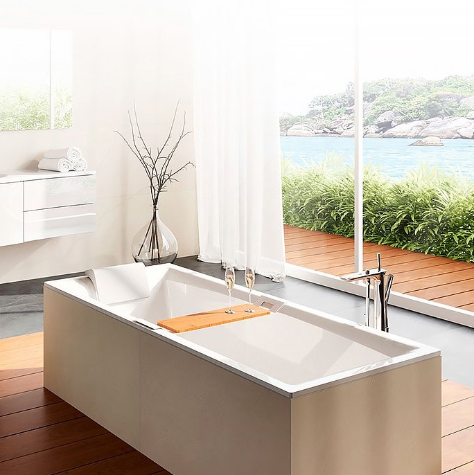- расположение слива-перелива по центру, минималистский перелив с крышкой, сливная крышка в цвет ванны
