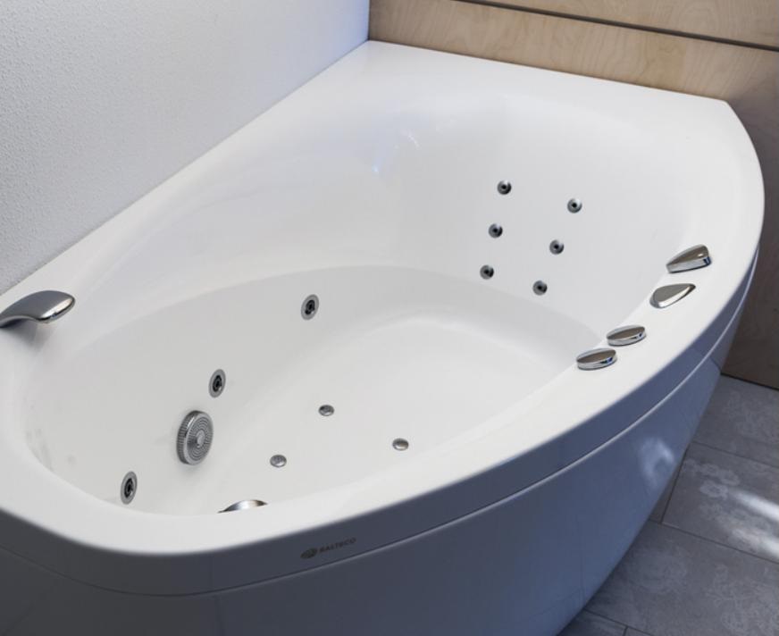 Balteco Eclipse - ванна с угловой установкой лево/право, изготовлена из санитарного акрила, можно оборудовать тонированной душевой стенкой.