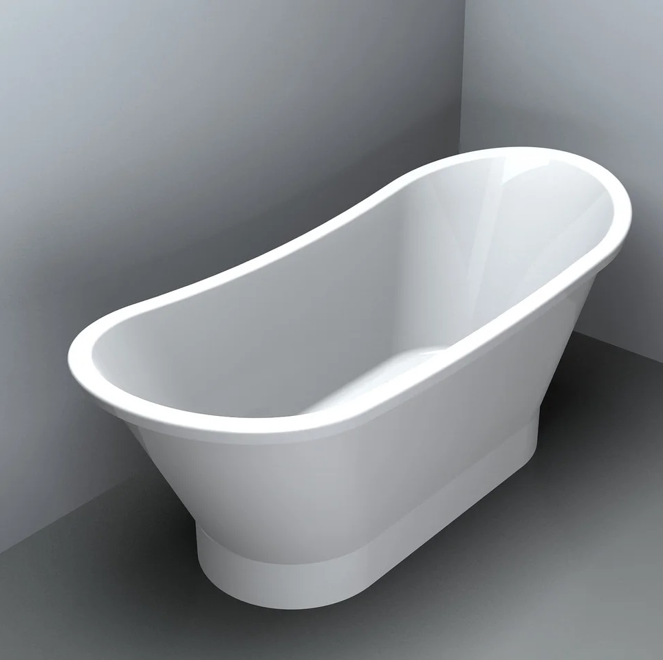 Отдельностоящая ванна из литого мрамора со сливным отверстием в полу. Ванна отличается высокой прочностью, теплопроводностью и может быть установлена у стены или по среди комнаты. Также, возможно окрашивание ванны, внешняя часть и борт, в соответствии с таблицей RAL Kemichal.