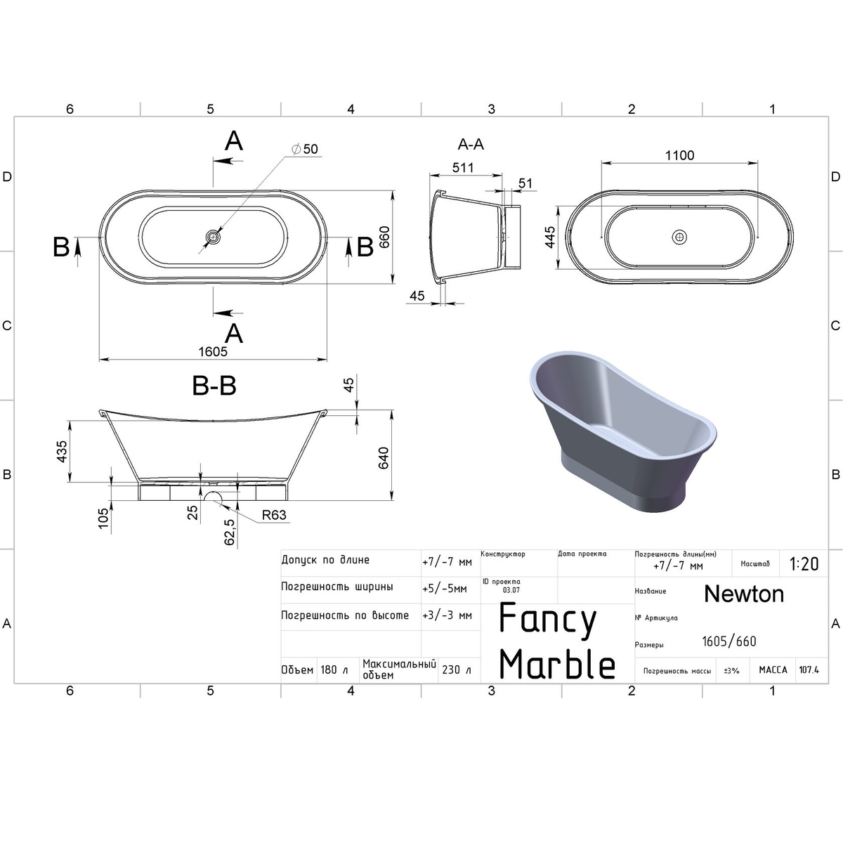 Ванна Fancy Marble Newton 160х66 (90160001) RAL покрытие