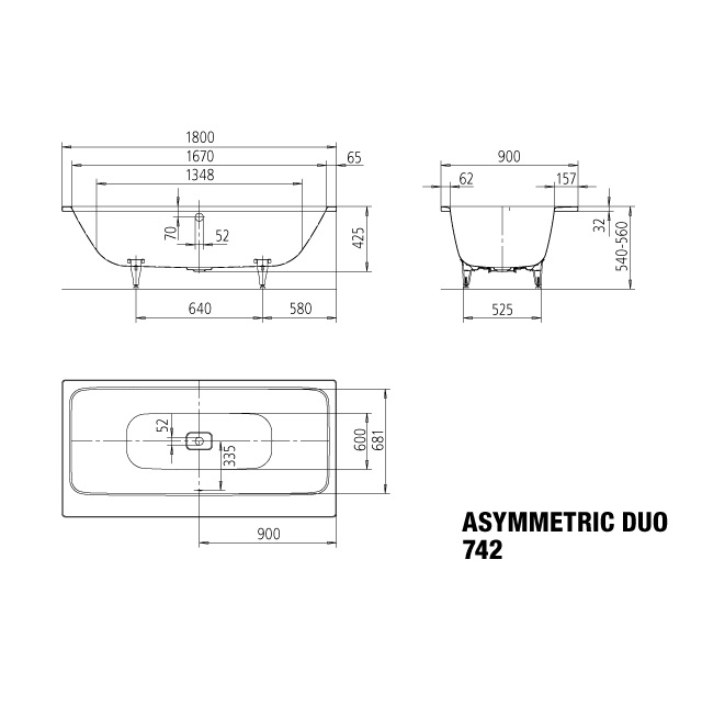 Ванна стальная Kaldewei Asymetric Duo 1800, mod 742.