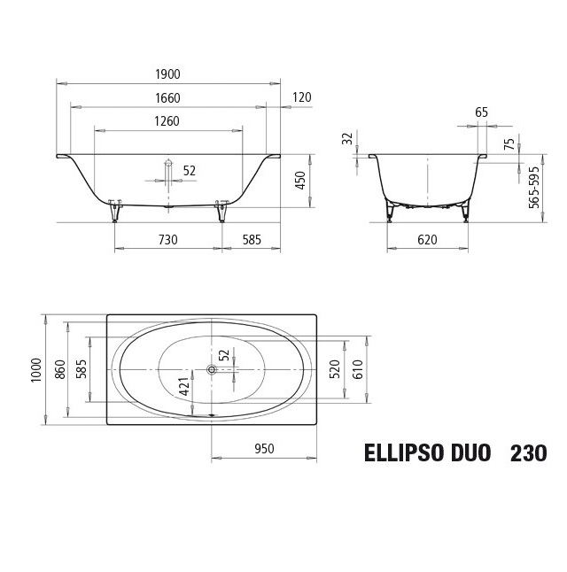 Ванна стальная Kaldewei Ellipso Duo 1900, mod 230.