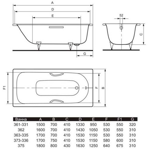 Ванна стальная Kaldewei Saniform Plus Star 150 см, mod 331, с отверстиями под ручки.