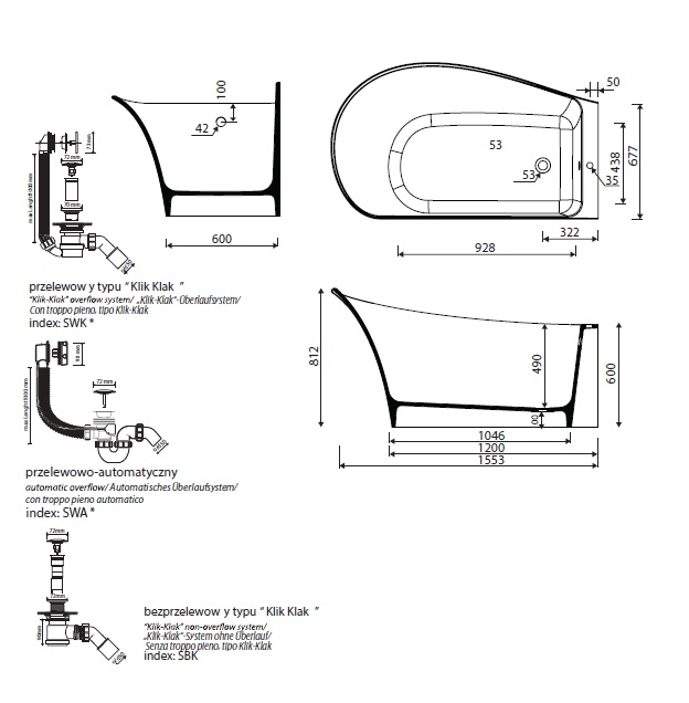 - система Клик-Клак: с переливом/без перелива, при покупке уточняйте