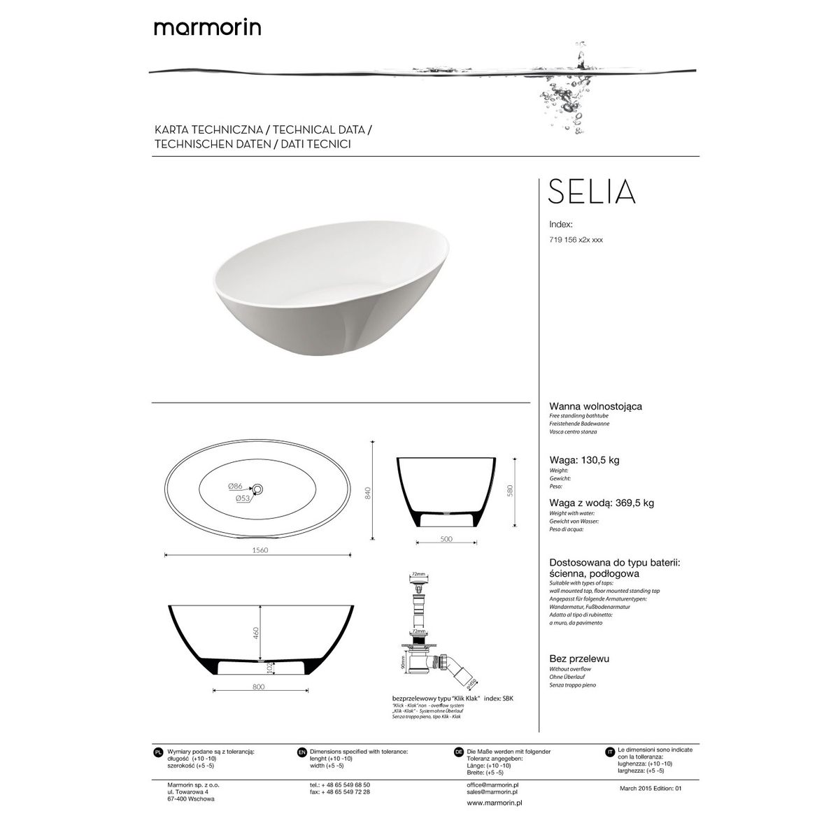Ванна Marmorin Selia 1560 (P_W_075_03_1560) белый