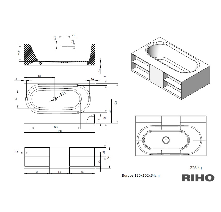 Ванна Riho Burgos 180x102 (BS4200500000000)