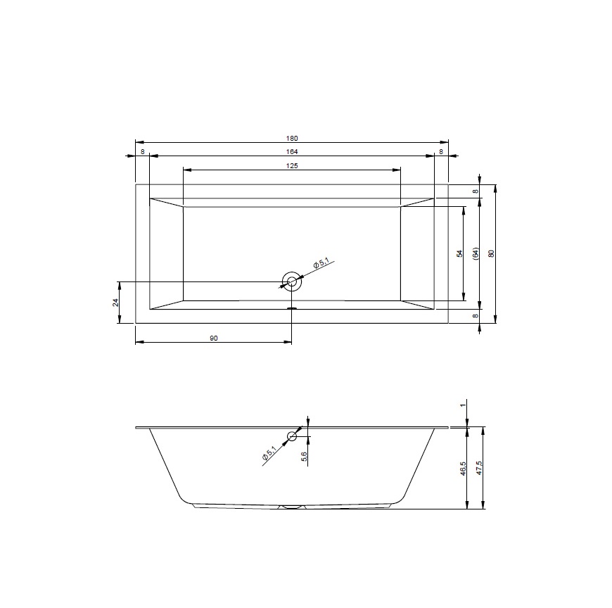 - 180 x 80 x 47.5 см, высота края всего 1 см