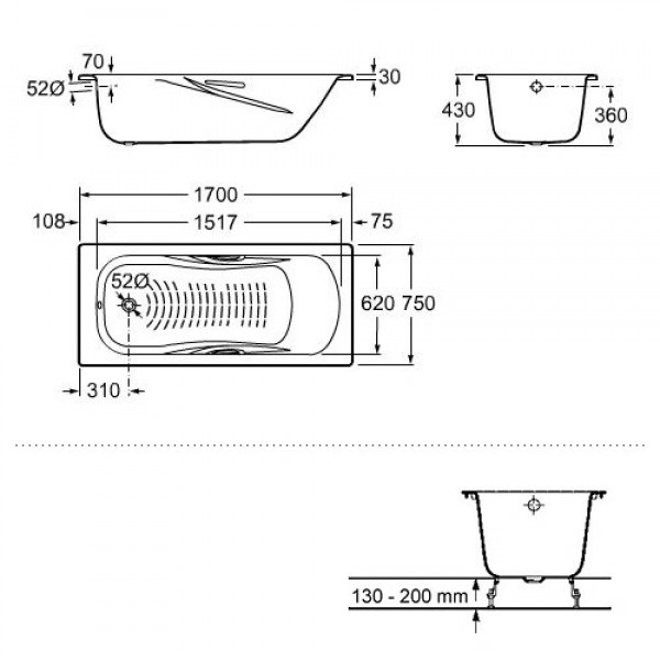 Ванна стальная Roca Princess 1700 (A220270001+A291021000)