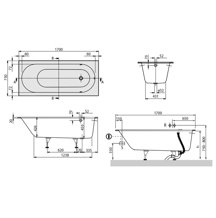 Ванна Villeroy&Boch Oberon 170 (BQ170OBE2V-01)