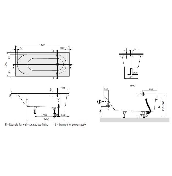 Ванна Villeroy&Boch Oberon 180 (BQ180OBE2V-01)