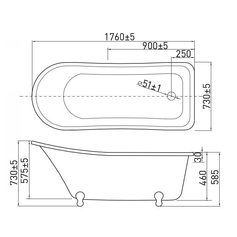 - ванна на декоративных ножках (регулируемые хромированные ножки в виде львиных лап), цельнолитая с панелью (панель с ванной являются одним целым), сифон арт. 90-00-016 покупается отдельно