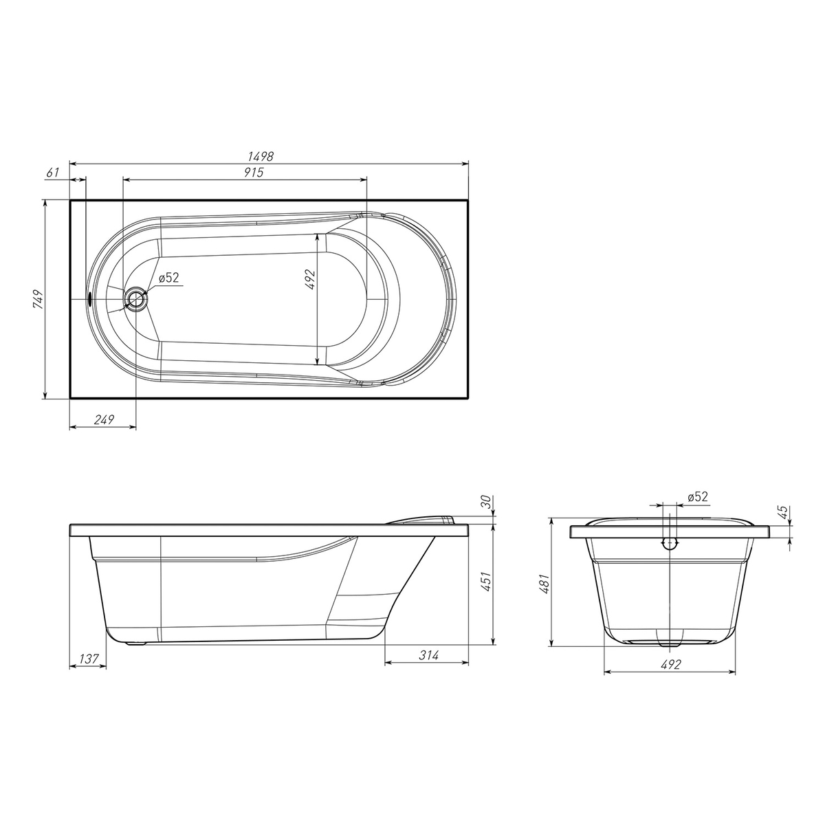 Ванна Volle Iberia 150х75 см (TS-1575481)