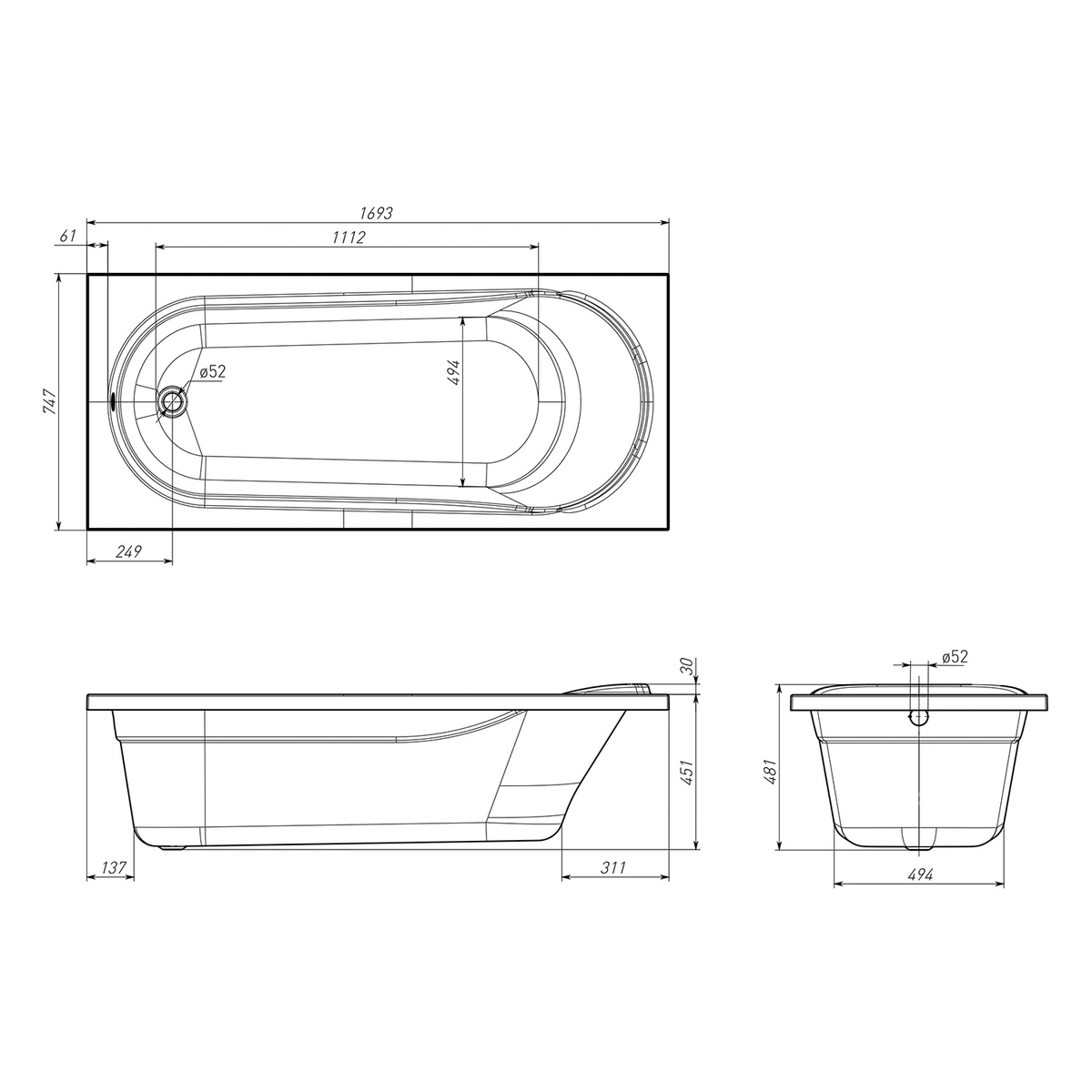Ванна Volle Iberia 170х75 см (TS-1775481)