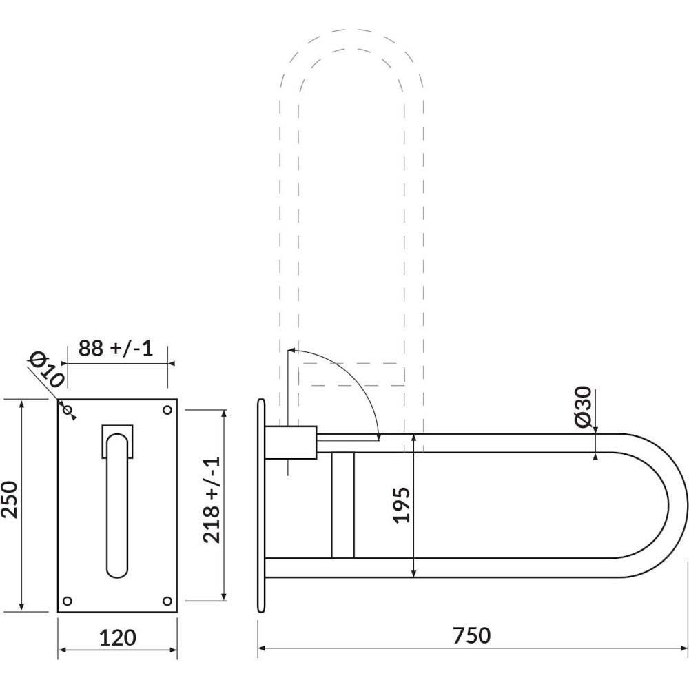 - откидной настенный поручень имеет удобную скругленную форму, что является неоспоримым преимуществом для безопасного использования, его можно закрепить как у умывальника, так и у унитаза, в душе или в ванной комнате