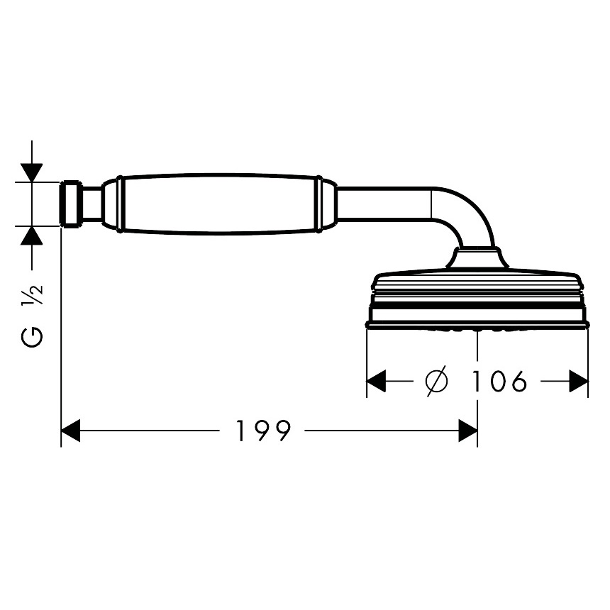 - Длина 199 мм, Ø 106 мм, 1 тип струи: RainAir (дождевая струя, обогащенная воздухом)