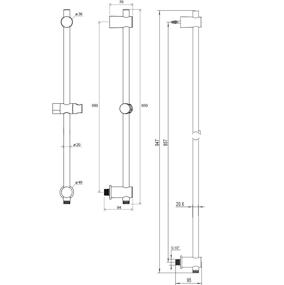 - настенный вывод для воды расположен в самом держателе, подвижный держатель One Hand