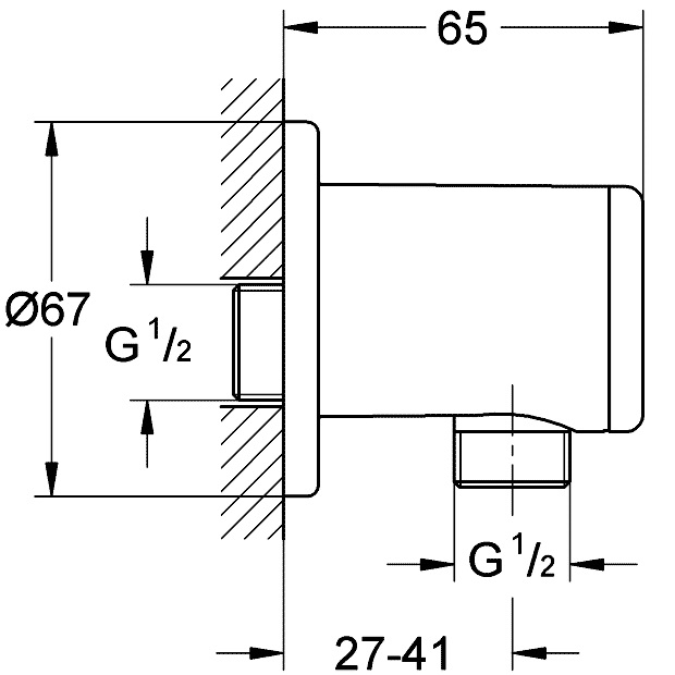 - Подключение душа 1/2", настенное подключение 1/2", внешняя резьба