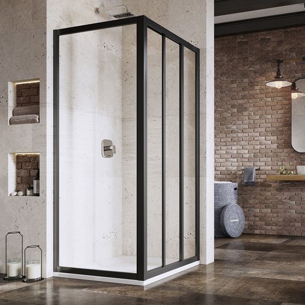 Душевая стенка Ravak Supernova APSS-80 профиль черный + витраж Transparent