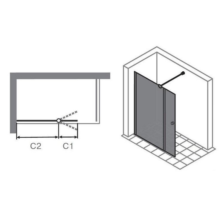 Ширина АхВ (1285-1300) , ширина дверки С1 (356 мм), ширина неподвижного сегмента C2 (929-944 мм), высота (2000 мм).