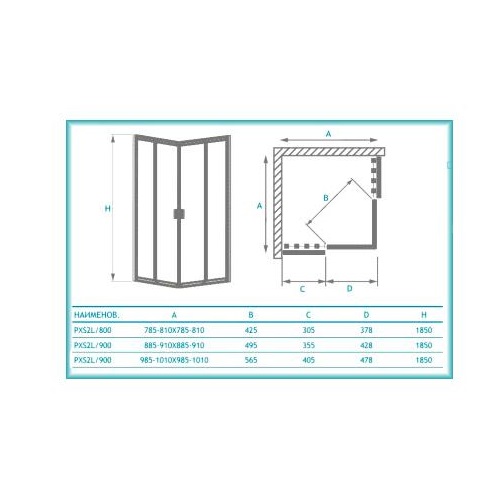 - размеры: 885-910 х 885-910 х 1850 мм, ширина входа 495 мм