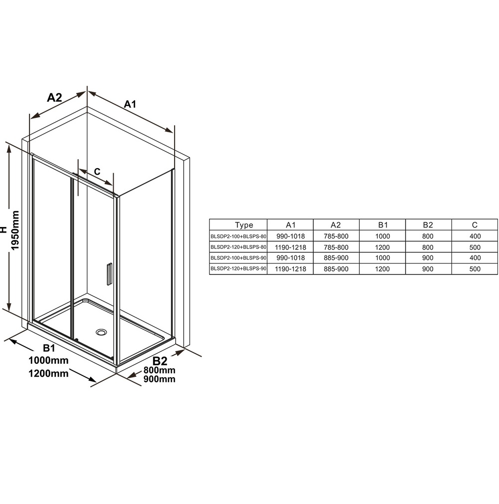 Идеальный партнер для душевой двери BLSDP2. Комбинируя их, вы получите душ прямоугольной формы.