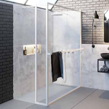 - витраж стеклянный прозрачный тол. 6 мм, покрытие Riho Shield анти-капля, профиль белый / черный матовый