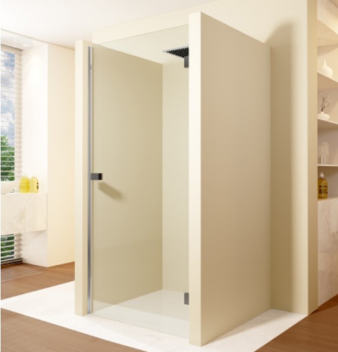 - профиль алюминий хромированный, витраж стеклянный прозрачный тол. 6 мм, покрытие Riho Shield анти-капля