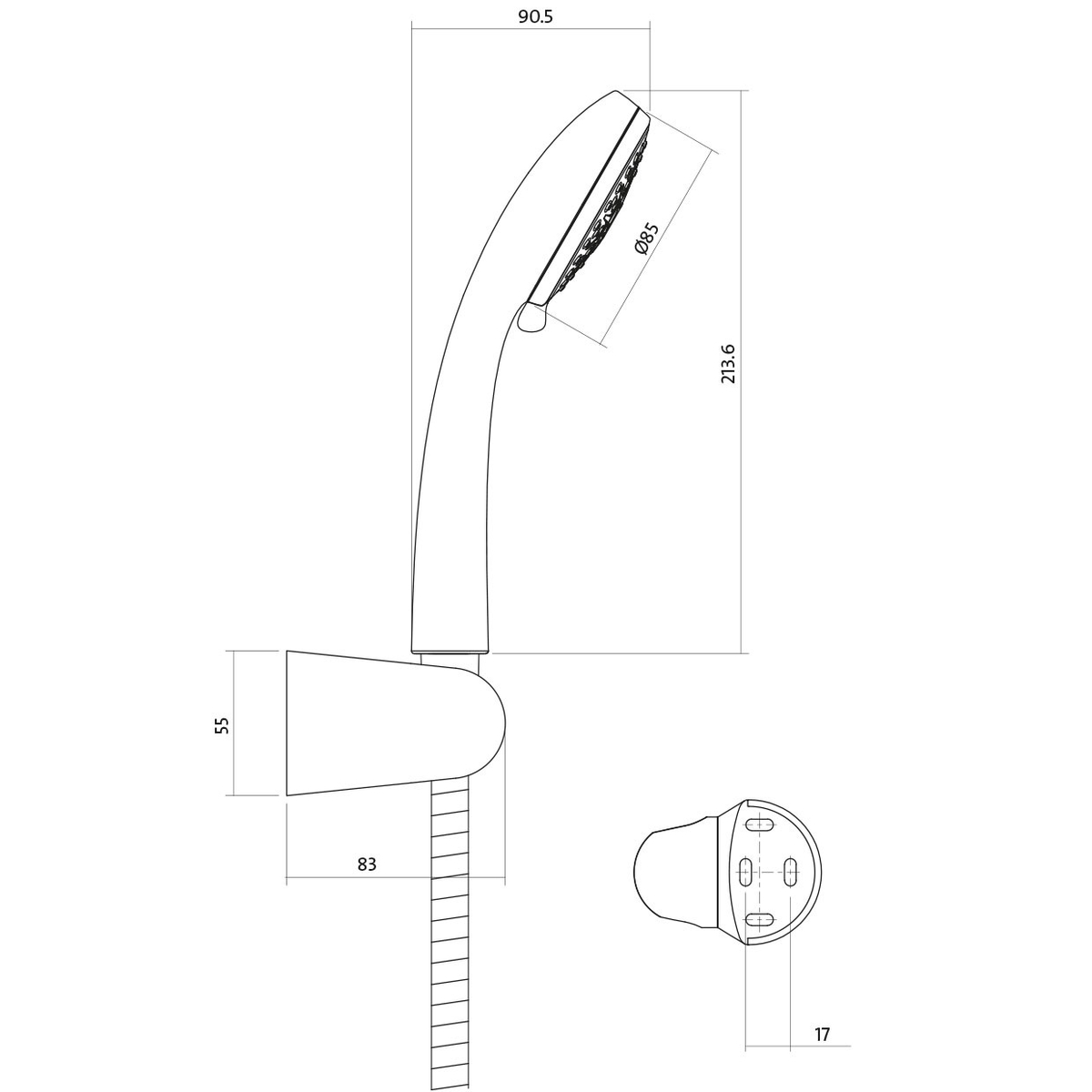 - Душевая лейка: диаметр 85 мм, длина 213.6 мм, 3 режима: дождь, массаж, эко