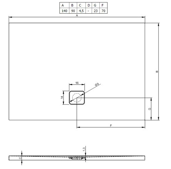 - ультраплоский, функциональная область поддона не имеет боковых границ, только отверстие слива