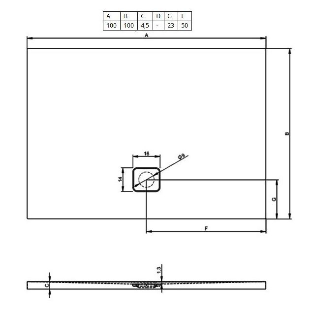 - ультраплоский, функциональная область поддона не имеет боковых границ, только отверстие слива