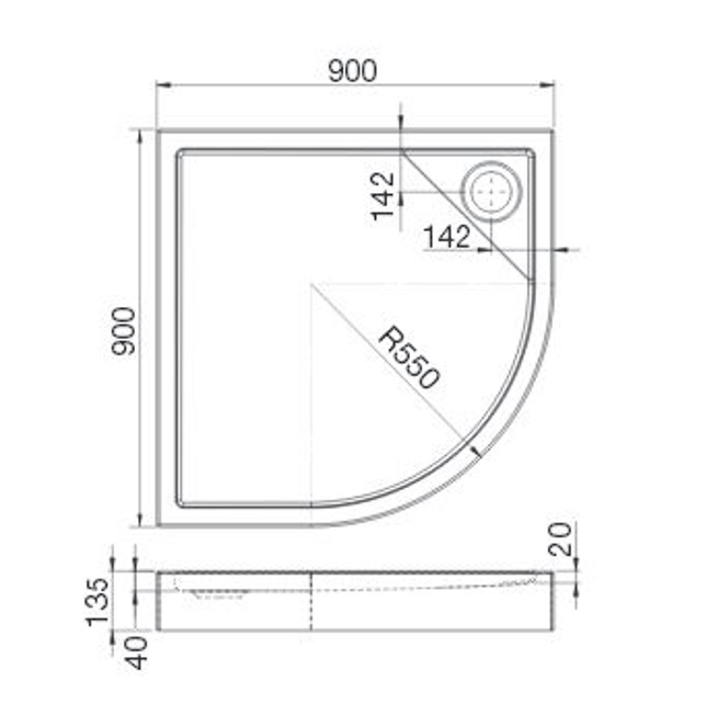 - 90 х 90 х 13.5 см, слив Ø 90 мм