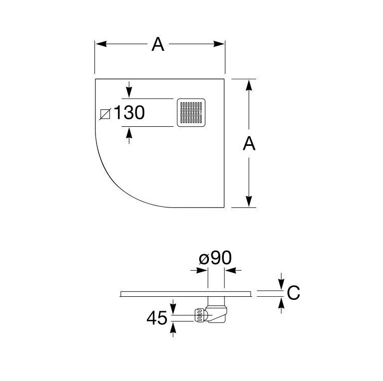 - 90 х 90 х 4.5 см, слив Ø 90 мм