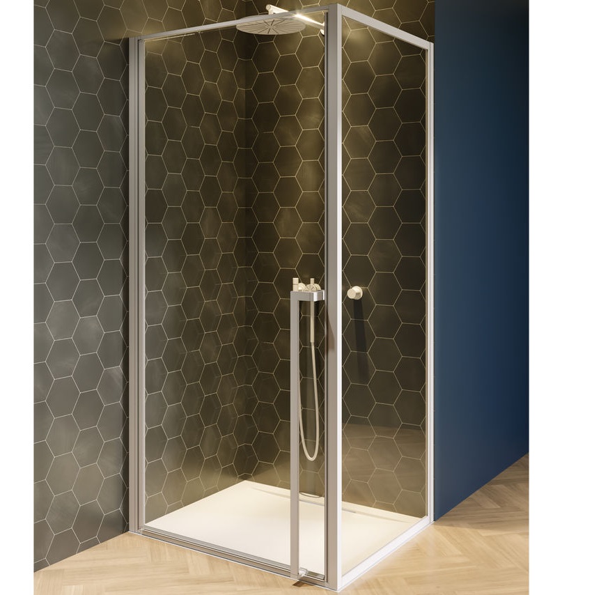 - витраж стеклянный прозрачный тол. 6 мм, покрытие Riho Shield анти-капля, профиль/петли черные или белые матовые, поддон приобретается отдельно