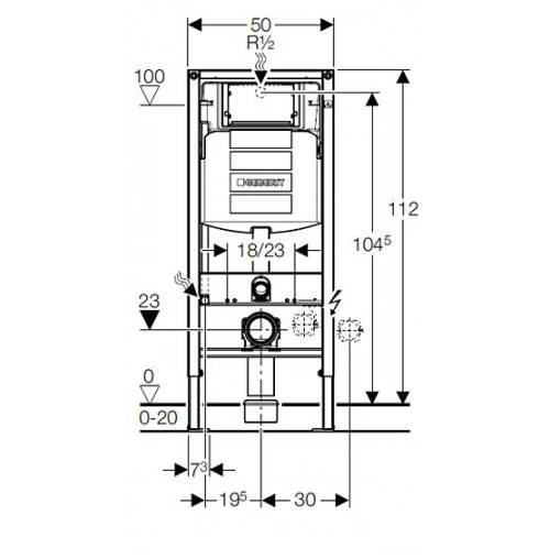 - смыв посредством смывной клавиши Geberit Sigma 12 см