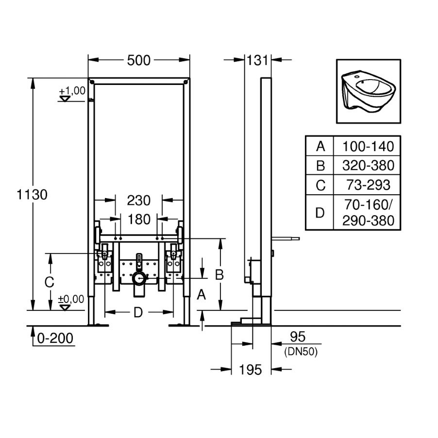 - Крепежный материал: болты-держатели для биде, смывное колено, выдерживающее высокую температуру DN 50, уплотнение Ø 32 мм, 2 звукоизоляционных подключения смесителя DN 15, крепежный материал для биде, без принадлежностей для монтажа перед стеной