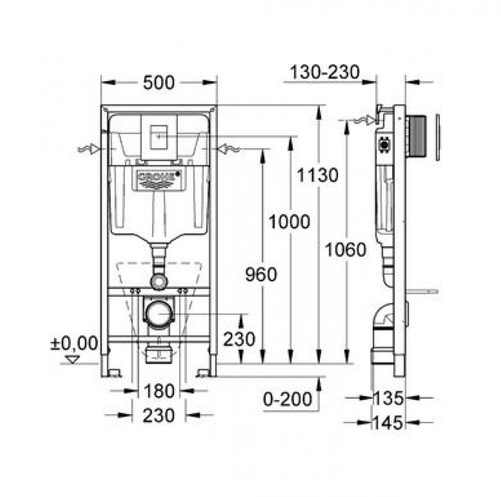 - комплектация: инсталляция, уголок монтажный (38558), кнопка для инсталляции (38732), комплект звукоизоляции (37131000), Grohe Fresh емкость для размещения ароматических таблеток (38796000)