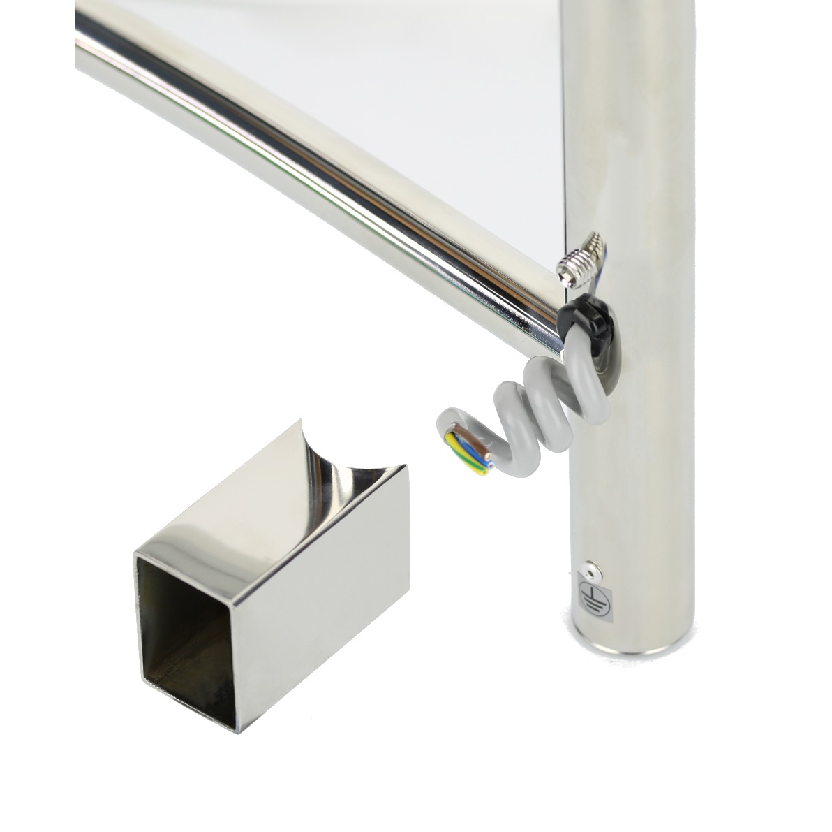 Комплект скрытого подключения электрических полотенцесушителей Марио. Два варианта: скрытое подключение для круглого стояка полотенцесушителя и для профильного. Позволяет быстро и просто произвести монтаж электрического полотенцесушителя.