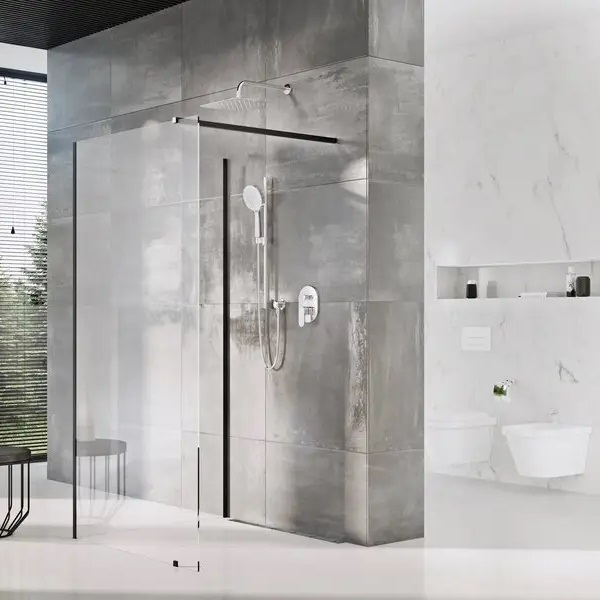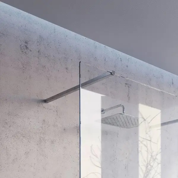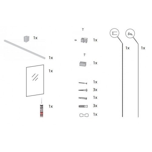 Набор металлических деталей для душевой кабины Walk-In Wall и Walk-In Corner размером с шириной входа 80/90/100 см. Устойчивость душевой кабины обеспечивает опора и тонкий держатель, состоящие из двух хромированных концов (стена+стекло), соединенные алюминиевым профилем с отделкой поверхности полированный алюминий или черный.