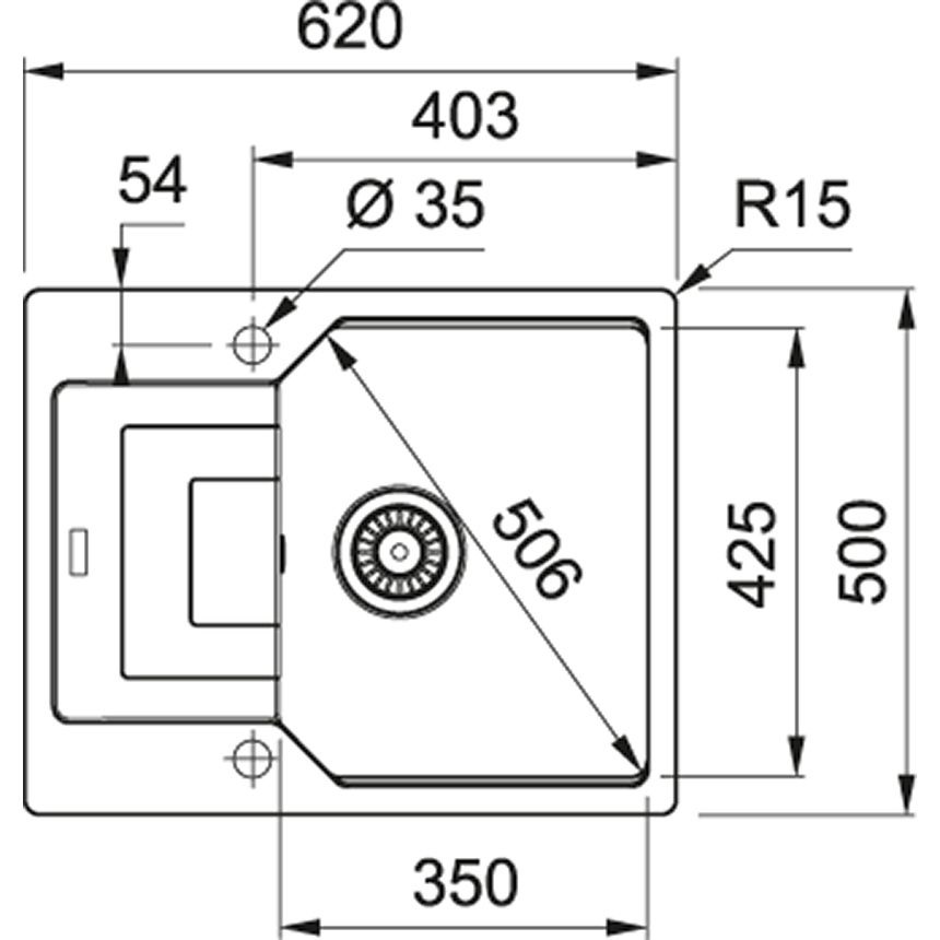 - общий размер 620 x 500 х 220 мм, размер чаши: 350 х 425 х 220 мм