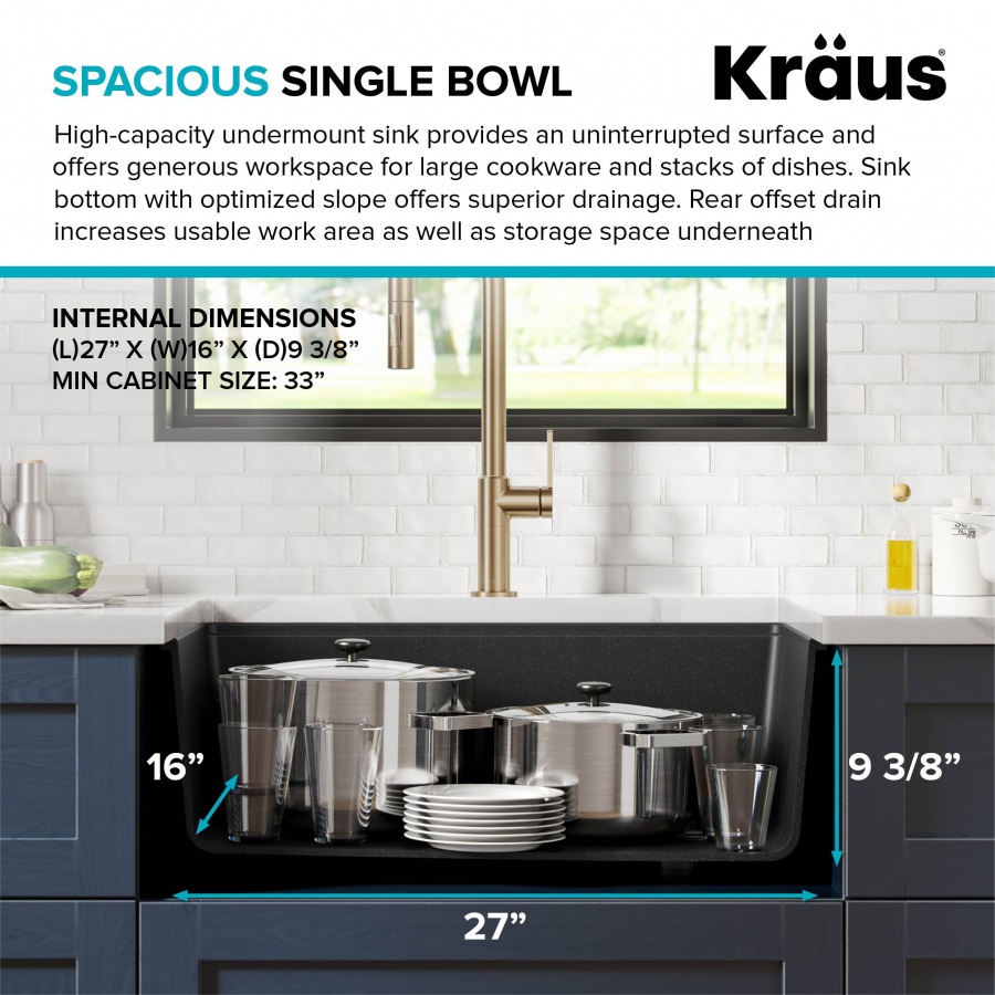 Кухонная мойка Kraus Bellucci KGUW2-33MBL, с установкой под столешницу.