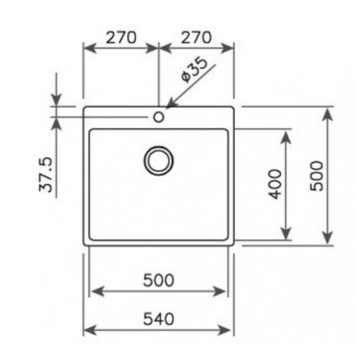 - 540 х 500 х 200 мм, размер чаши: 500 х 400 х 200 мм